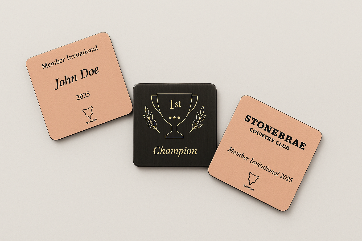Make your event unforgettable with custom badges that serve as keepsakes and functional ball markers. Perfect for player gifts, winner prizes, or commemorative swag. -